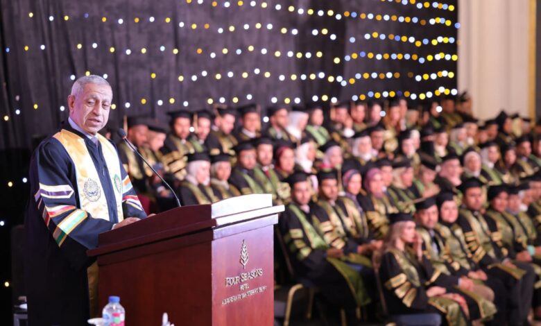 في كلمته ، وجه سعادة الأستاذ الدكتور إسماعيل عبد الغفار إسماعيل فرج كلمة للخريجين قائلا: