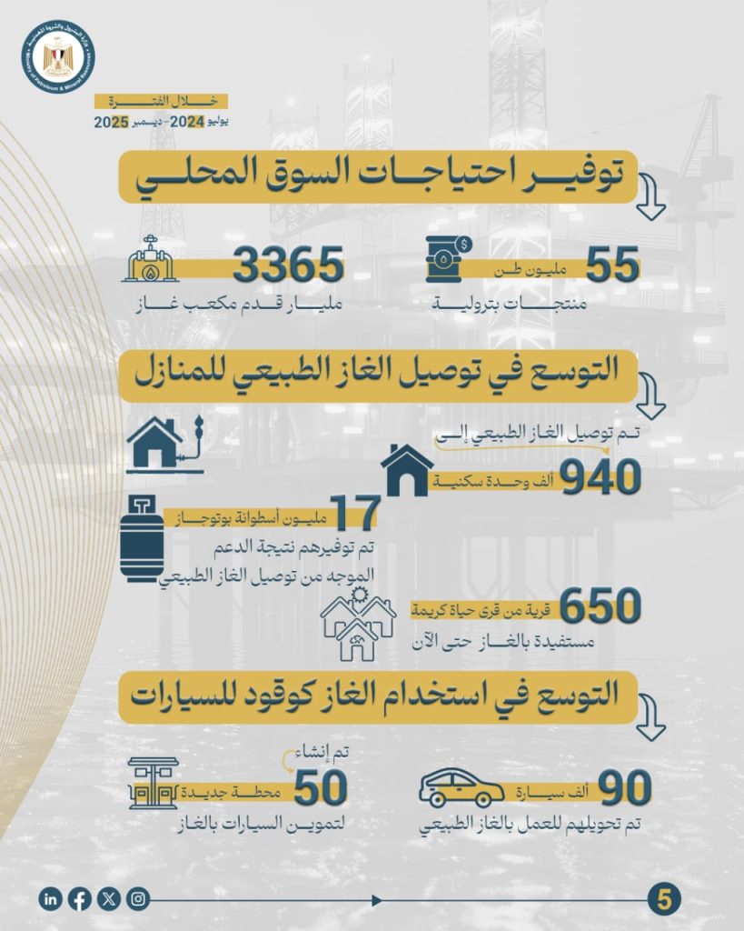 حصاد إنجازات وزارة البترول.. 2025 يشهد تحولًا نوعيًا في إنتاج الغاز وانطلاقة قوية للتعدين