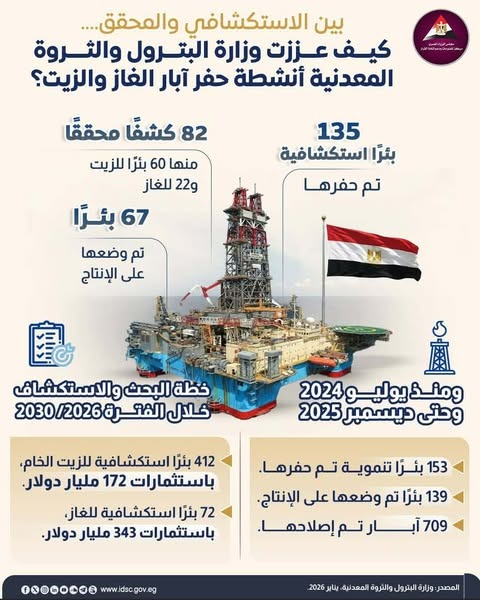 حفر 135 بئرًا استكشافية ووضع 67 أخرى على الإنتاج| إنفوجراف