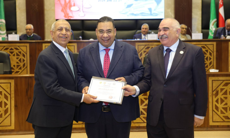 رئيس هيئة قضايا الدولة ورئيس الأكاديمية العربية يسلمان شهادات التقدير للمشاركين في مؤتمر “الاقتصاد الأزرق”