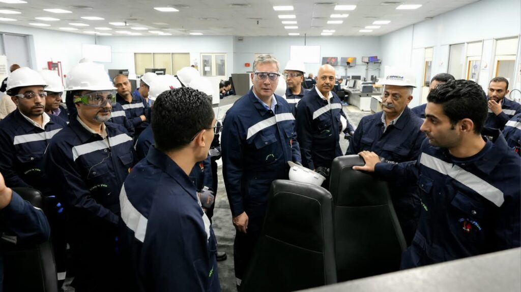 خلال جولته، تفقد الوزير الوحدات الإنتاجية الجديدة والمُحدَّثة وغرفة التحكم الرئيسية.